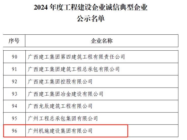 ?中國(guó)施工企業(yè)管理協(xié)會(huì)公布了“2024年度工程建設(shè)誠(chéng)信典型企業(yè)名單”,機(jī)施集團(tuán)連續(xù)4年入選。?
